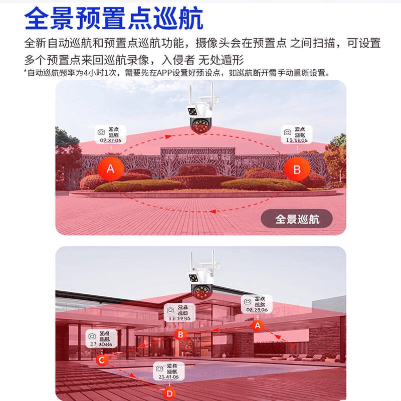 这款监控设备凭借其三摄设计,可提供全方位的360度监控效果,极大提升了对环境的覆盖范围。这在某种程度上预示着无论是家庭贼贼、小区安全还是商业环境,有了这款设备,都能确保每个角落的情况尽收眼底。它独特的太阳能供电技术让用户无需担心电源问题,户外使用更便利,同时也符合环保理念,更加经济实用。