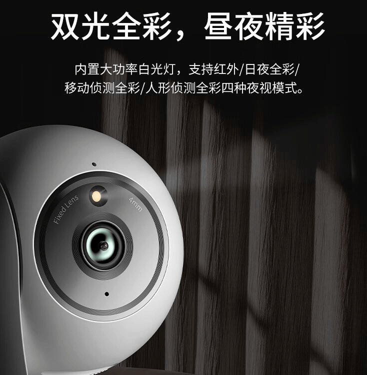 特别值得一提的是,内置的双光全彩夜视功能,具有红外和夜视白光灯,可以自动切换,帮助用户在不同光线环境下实现精准看护。同时,它还具备多种智能AI功能,包括哭声侦测和人形识别,提升了家庭安全防护的智能化水平。